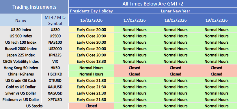 Due to upcoming holidays, trading hours for related products will be adjusted accordingly in February 2026.