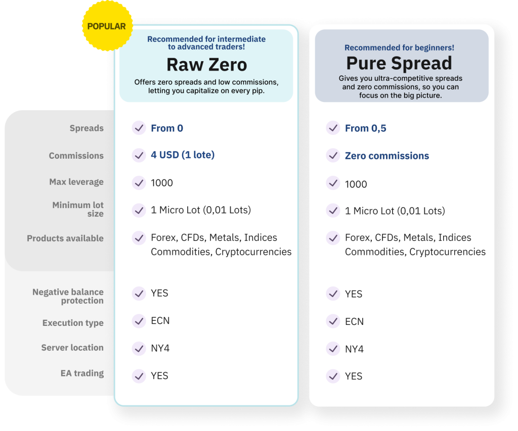 *The minimum deposit required for both Raw Zero and Pure Spread accounts is $100 USD(FTD Amount).