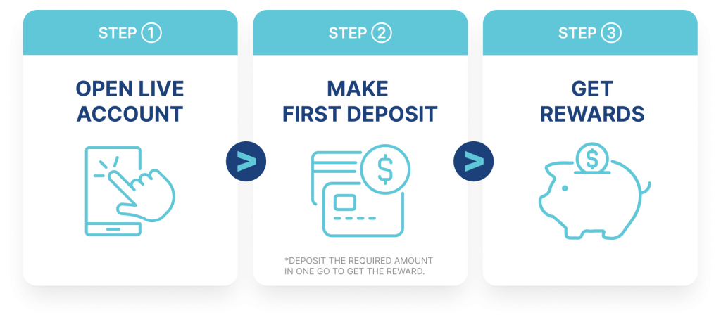 To be eligible for $20(Credit Voucher), please make an initial deposit equal to or greater than the program’s deposit requirement. To withdraw the $20 credit, you must first complete a trading volume of 5 lots.