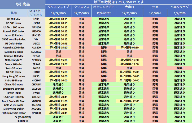 2025年12月の祝日に伴い、関連商品の取引時間が変更となります。