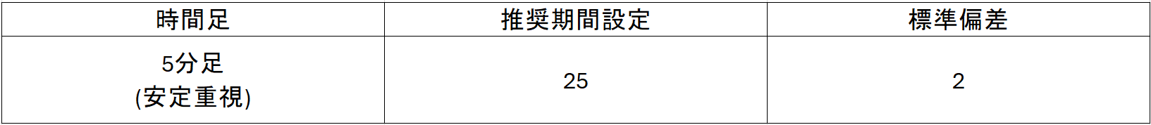 およそ2時間分の動きを平滑化するこの設定は、エントリーや方向感の見極めにも役立ち、取引経験が浅い段階でも無理なく活用しやすいでしょう。チャートの波を落ち着いて読む感覚で使えるのが、5分足設定の魅力です。