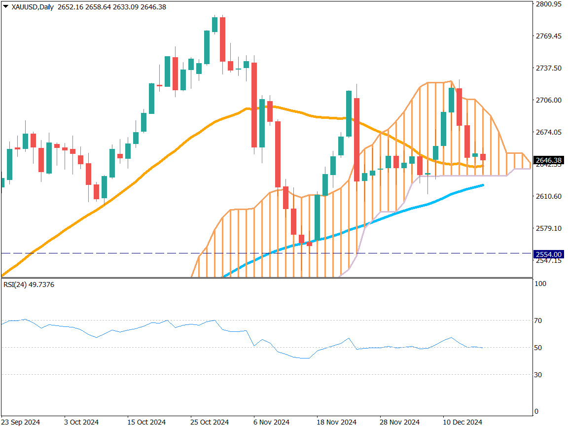 - ゴールドは2650ドル付近で推移、26日移動平均線が支持線