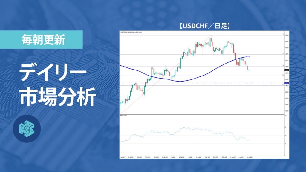 USDCHFは下落基調にあり、フィボナッチリトレースメントの38.2%を下抜けた。次の目標は50%で、RSIは38と下落余地がある。本日はスイス中銀と英中銀の政策金利発表が予定されており、影響は大きい。米国は休場だが、失業保険申請件数と原油在庫量の発表がある。ユーロドルは3日続伸、ドル円は5日続伸、ポンドドルはレンジ相場。英国ではサービス部門のインフレ率が予想を上回り、利下げ観測が後退した。