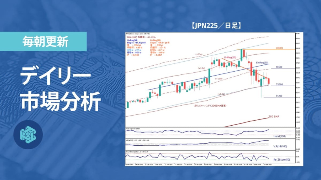 RSIは70を一時的に上回ったのちに反落している。買い勢力の勢いが鈍化しており、急激なドル安が進んでいた相場だったが、調整局面入りの可能性がある。