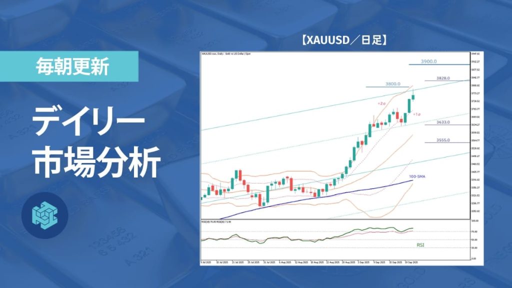 続伸した場合の上値は、心理的節目として意識される3800ドルおよび3900ドル、さらにテクニカルな抵抗水準である3828ドルが挙げられる。一方、下値の目安としては3633ドルと3555ドルが下支えとして想定される。