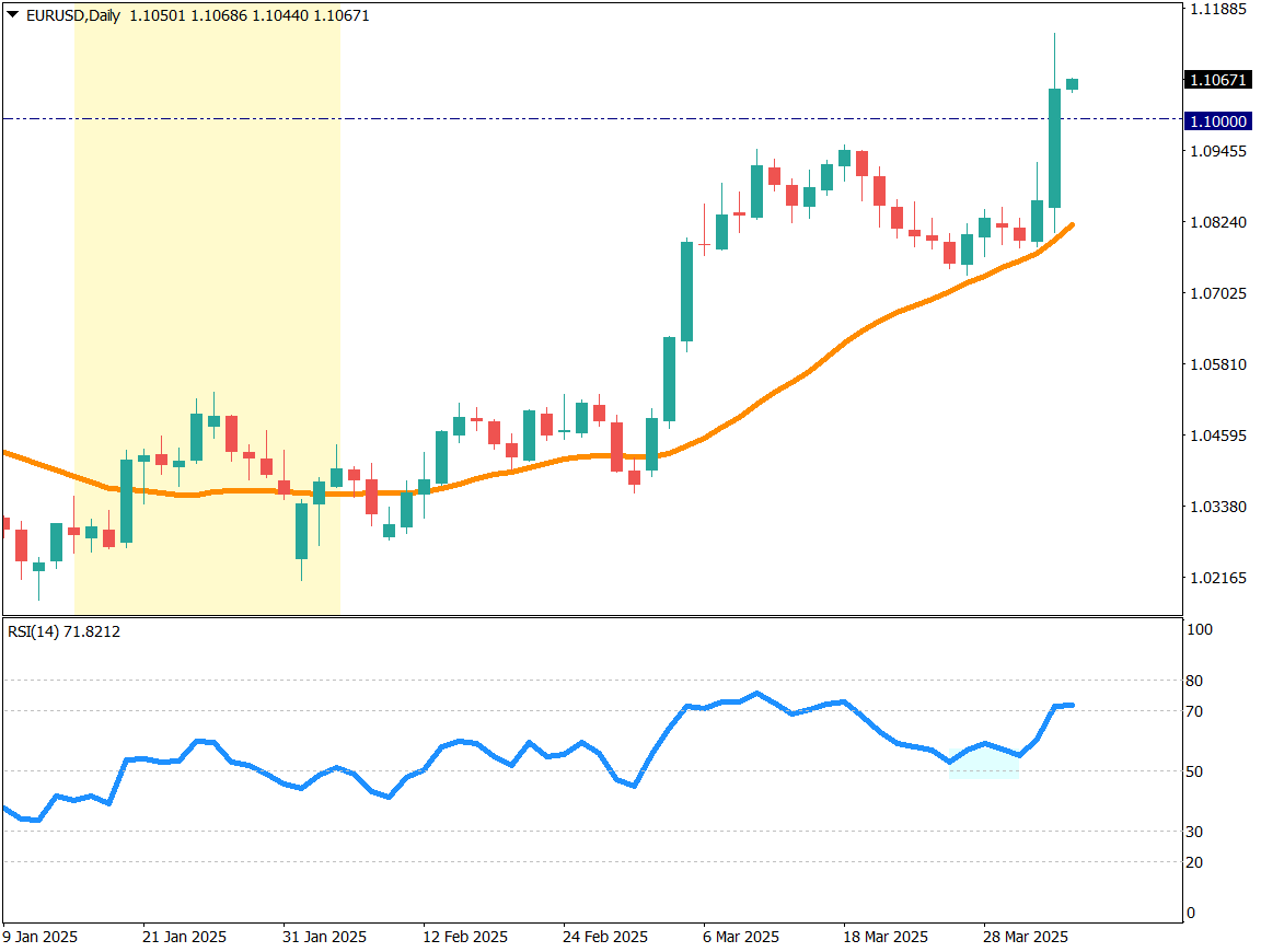 EUは結束して対抗措置を検討し、中国も同様の姿勢を示している。ユーロドルは1.10ドルを超えて上昇トレンドが発生。原油価格も需要減少懸念から70ドル台から66ドル台へと下落した。