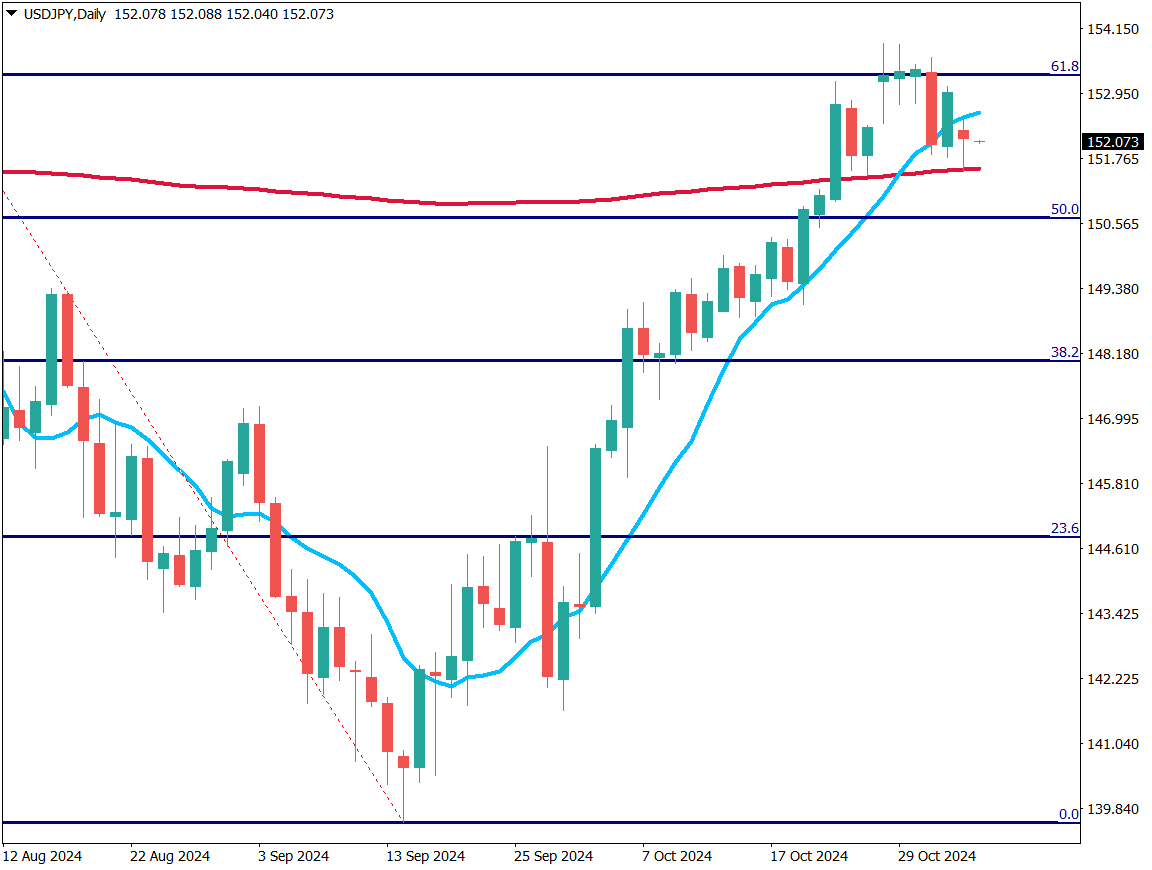 本日の米大統領選開票において、トランプ氏とハリス氏の支持率は拮抗しており、市場は神経質な展開となっている。為替市場では、ドル円は152円台で推移し200日移動平均線を上回る一方、ドルインデックスは様子見姿勢が強まっている。