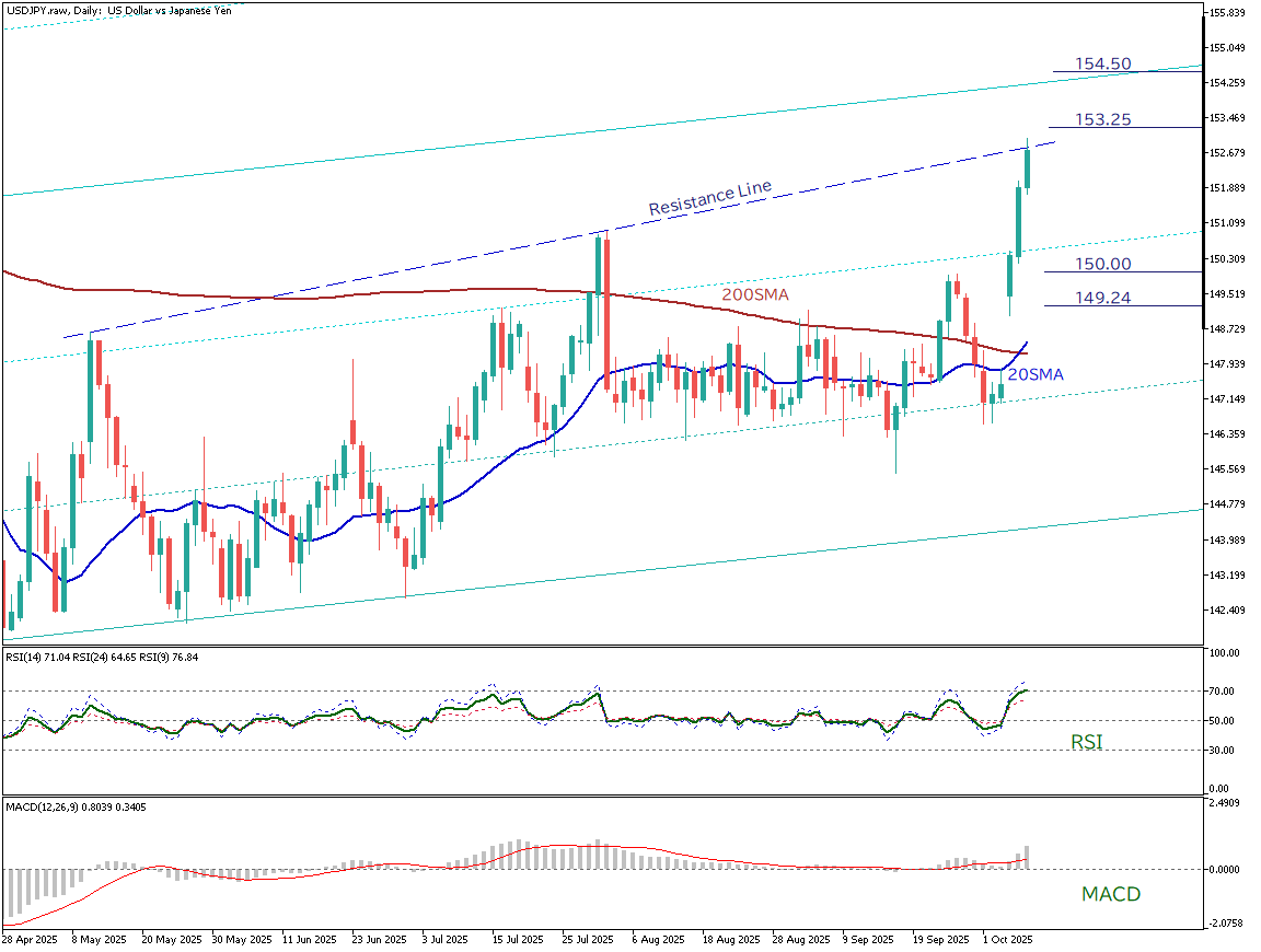 上昇が継続する場合は153.25円および154.50円が上値の目標として意識される。一方、調整局面では150.00円および149.24円が下値の目安となる。