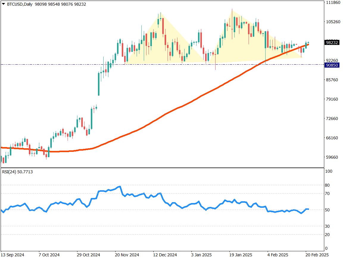 ビットコインは狭いレンジ内での推移が続いており、新たな材料待ちの展開。一方、ユーロドルは「上げ三法」の形成や、EUの利下げ停止の可能性、ウクライナ停戦交渉の進展などを背景に、1.06ドルを目指した上昇が予想される。