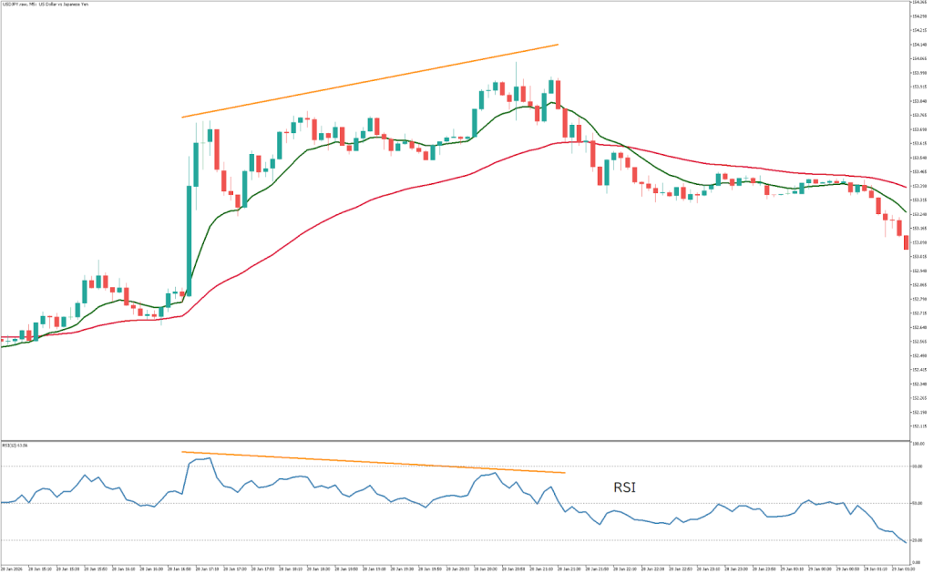 このような相場では、RSIが売られすぎ・買われすぎを示しても、反発せずにそのまま突き抜けることが珍しくありません。テクニカル分析は、相場がある程度落ち着いている状態でこそ機能します。材料によって一気に動く相場では、RSIのシグナルは判断材料として機能しにくく、スキャルピングは非常に危険になります。