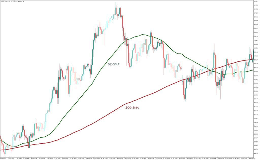 方向が決まったら、1時間足で具体的なエントリーポイントを探します。1時間足はダマシが比較的少なく、押し目買いや戻り売りのタイミングをつかみやすい時間軸です。