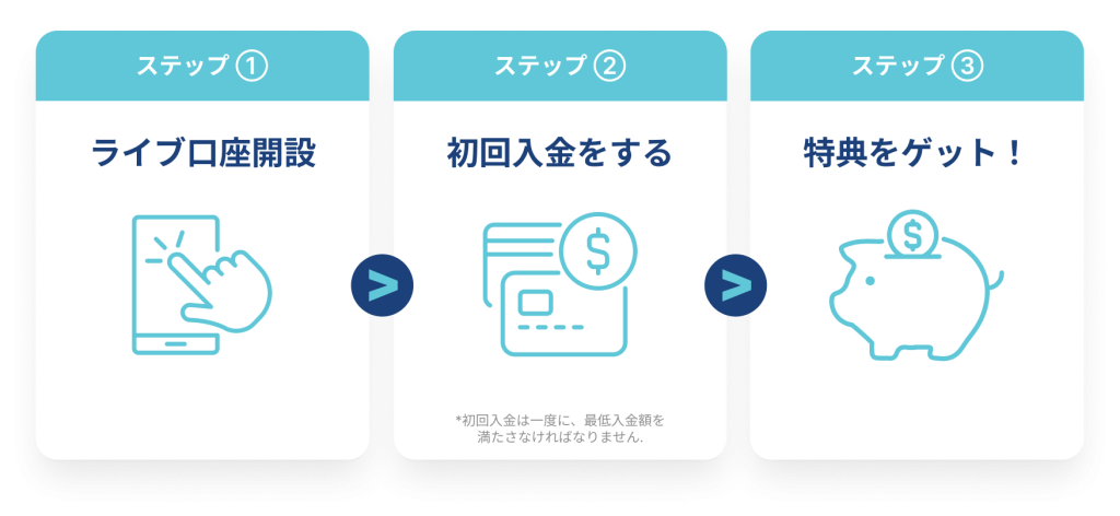 新規のお客様、および既にライブ口座を開設済みで、初回入金をまだされていないお客様が対象となります。