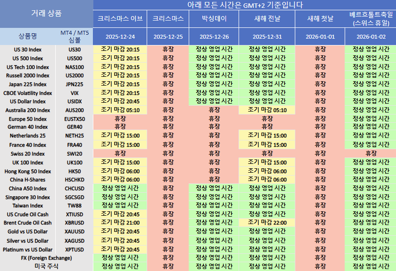 다가오는 공휴일로 인해 2025년 12월에는 관련 상품의 거래 시간이 조정될 예정입니다.