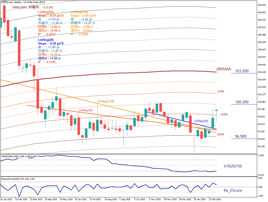 따라서 100.200을 상향 돌파할 경우, 반등의 상단 확인 수준으로 200SMA 부근인 103.200이 시장의 주요 저항으로 인식될 가능성이 있습니다.