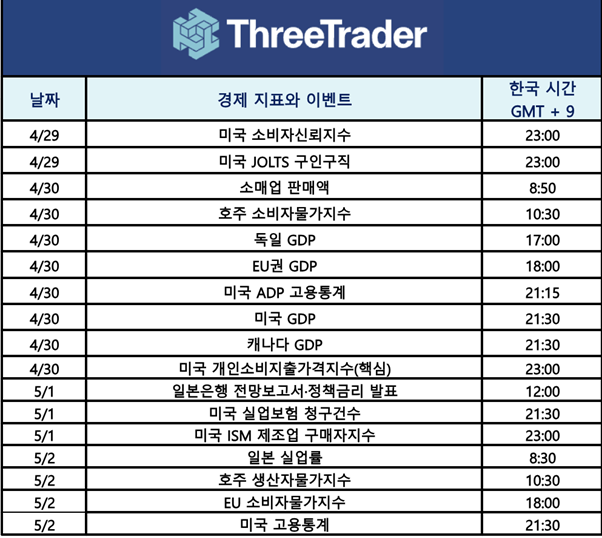 이번 주에는 미국 고용통계 발표와 일본은행 정책결정회의가 예정되어 있어 시장의 관심이 집중되고 있습니다. 특히 관세 영향과 DOGE 관련 정부 직원 해고가 고용지표에 어떤 영향을 미칠지 주목되고 있습니다. 한편, 골든위크 기간으로 일본 시장은 한산해질 것으로 예상되며, 이로 인한 변동성 확대 가능성에 투자자분들의 주의가 요구됩니다.