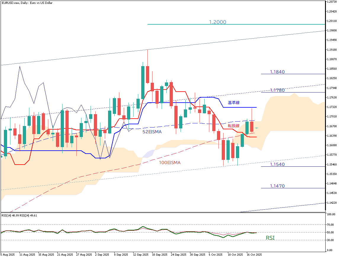 欧元兑美元方面,受美国经济稳健支撑美元买盘主导的影响,欧元上方受限,反弹幅度有限。从技术面来看,价格仍在尝试突破一目均衡表的“云层上限”,能否稳步突破将成为中期趋势是否转为上升的关键。