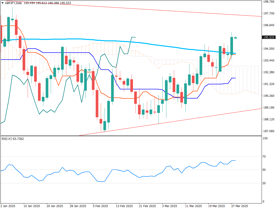 - 英镑兑日元也呈上行走势,在转换线支撑下逐步抬高低点,目前在195.50日元附近波动。