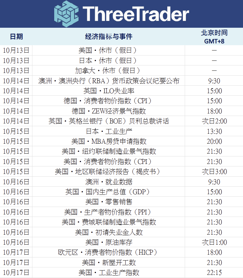 本周重点关注15日即将公布的美国消费者物价指数(CPI),以及欧元区消费者物价指数(HICP)等多项重要数据。若美国政府停摆持续,市场将更加依赖民间调查与预测数据,波动性或进一步加大。