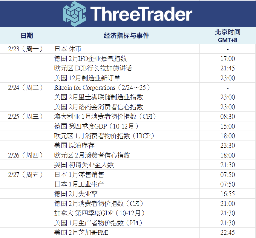 值得关注的经济指标与事件(02/23~02/27)